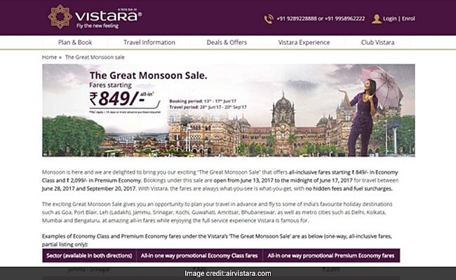 एयर विस्तारा का The Great Monsoon Sale ऑफर : टिकट बुकिंग शुरू, 849 रुपये कर सहित