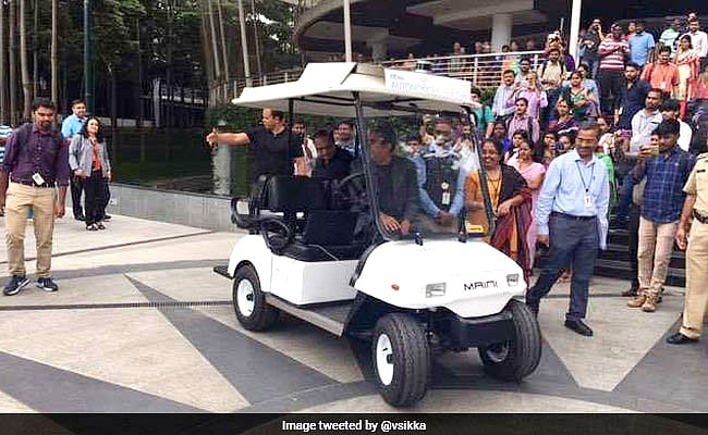 आईटी सेक्टर की दिग्गज कंपनी इंफोसिस ने अपनी ड्राइवरलेस कार्ट पेश की है. कंपनी के सीईओ विशाल सिक्का बेंगलुरु स्थित हेडक्वार्टर में इसी में सवार होकर पहुंचे. उन्होंने बताया कि इसे मैसूर ऑफिस में इंफोसिस के इंजीनियरों ने ही तैयार किया है. उन्होंने इसमें बैठकर कैंपस का चक्कर भी लगाया. विशाल सिक्का आज जब कंपनी के परिणामों के बारे में बात करने के लिए मीडिया से मुखातिब होने पहुंचे तो वह एक ‘चालक रहित’ कार्ट (छोटा वाहन) में बैठकर आए. सिक्का के अनुसार- इंफोसिस स्वाचालित वाहनों का विकास कर रही है. इसका लक्ष्य कृत्रिम बुद्धिमत्ता (आर्टिफिशियल इंटेलीजेंस) जैसी नई तकनीकों पर कर्मचारियों को प्रशिक्षित करना है.