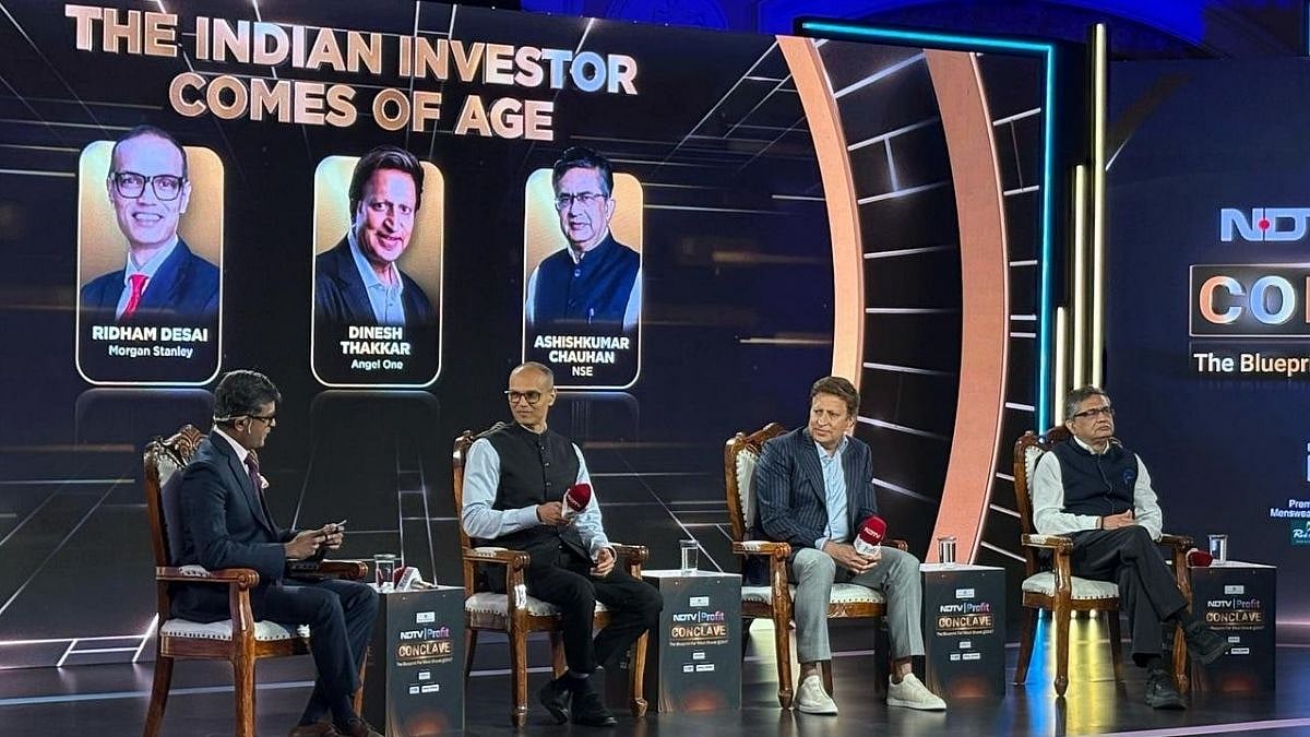 इस कॉन्क्लेव में 'The Indian Investor Comes of Age' पर आयोजित पहले सेशन में NDTV Profit के नीरज शाह ने मॉर्गन स्टैनली के MD और चीफ इक्विटी स्ट्रैटजिस्ट रिद्धम देसाई, एंजेल वन लिमिटेड के चेयरमैन और MD दिनेश ठक्कर और NSE के MD और CEO आशीष चौहान के साथ शानदार चर्चा हुई.