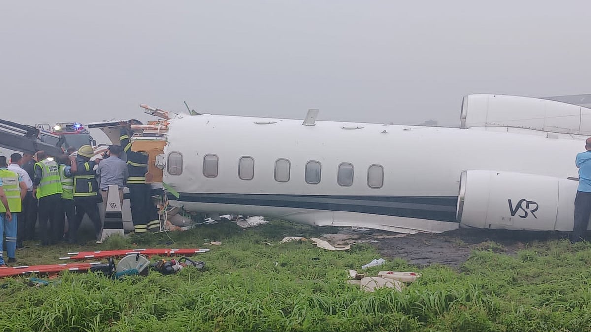 VSR Ventures के इस चार्टर्ड प्लेन में 2 क्रू मेंबर्स और 6 यात्री सवार थे. प्लेन के रनवे नंबर 27 पर उतरने के दौरान ये हादसा हुआ है.