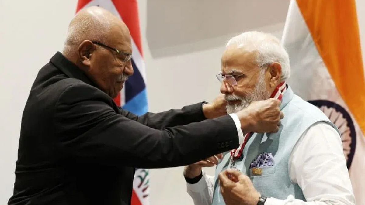 प्रधानमंत्री नरेंद्र मोदी को पापुआ न्यू गिनी (Papua New Guinea) में फिजी के सर्वोच्च सम्मान (Companion of the Order of Fiji) से नवाजा गया है. ये सम्मान इसलिए खास है, क्योंकि अब तक कुछ गिने-चुने 'गैर फिजी' नागरिकों को ही ये मिला है. फिजी के प्रधानमंत्री सित्वनी राबुका ने PM मोदी को कम्पेनियन ऑफ द ऑर्डर ऑफ फिजी से सम्मानित किया.