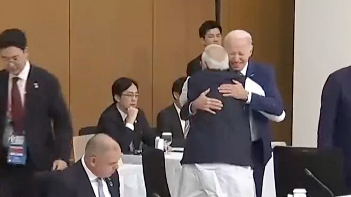 इस दौरान पीएम नरेंद्र मोदी की हिरोशिमा में अमेरिका के राष्ट्रपति जो बाइडेन (Joe Biden) से मुलाकात चर्चा की विषय बन गई. दरअसल, प्रधानमंत्री मोदी कुर्सी पर बैठे हुए थे, बाइडेन उनकी तरफ आए, PM मोदी ने देखा कि बाइडेन उनकी तरफ चले आ रहे हैं तो वो भी उठकर खड़े हुए और दोनों नेताओं ने एक दूसरे से हाथ मिलाने की बजाय गले लगकर दूसरे का अभिवादन किया.